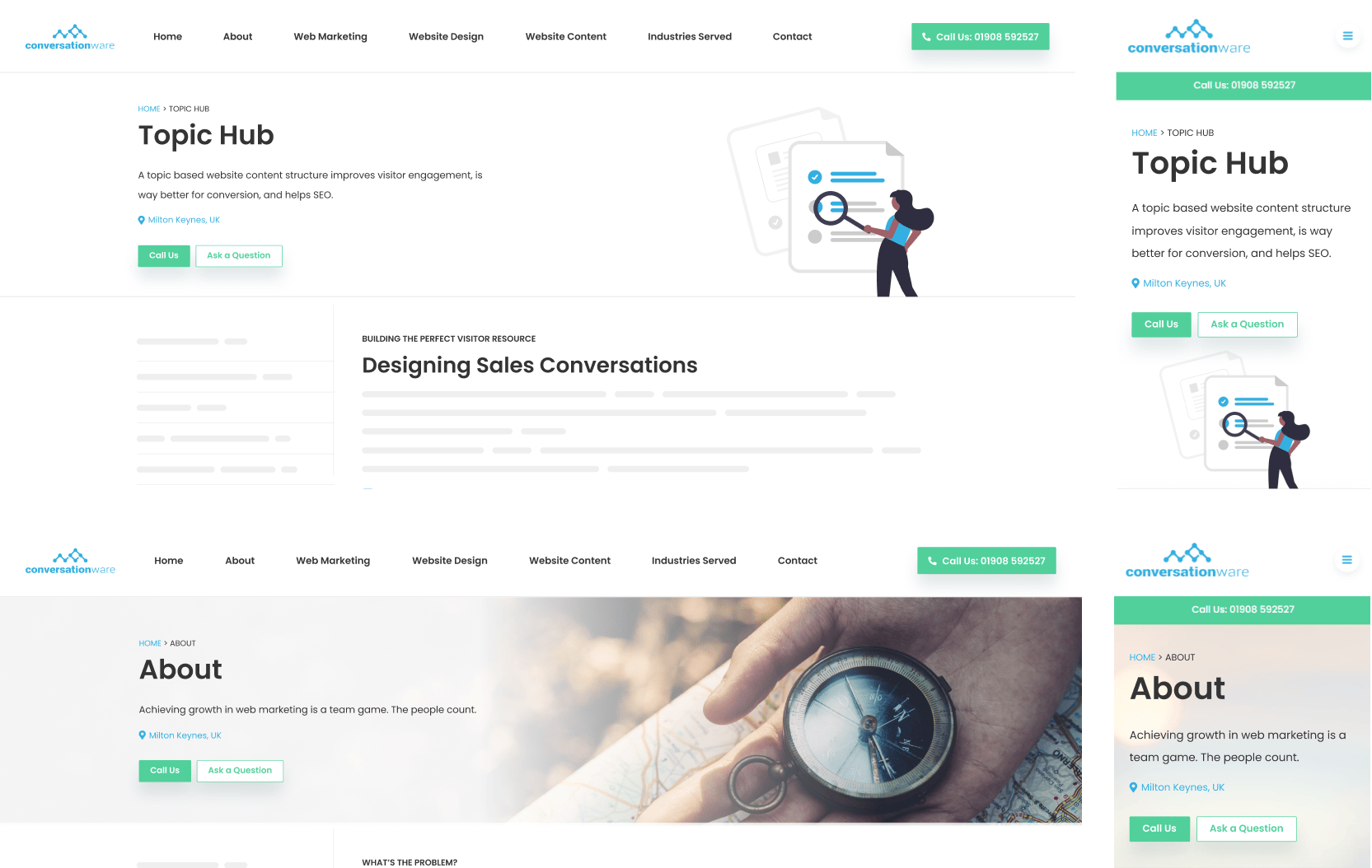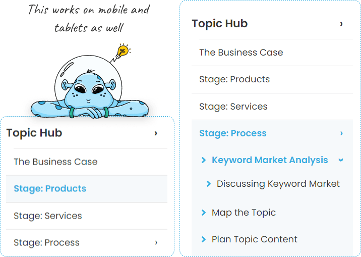 Visitors on mobile devices are particularly challenged by large websites. Mobile drop down context menus combine with topic hubs.